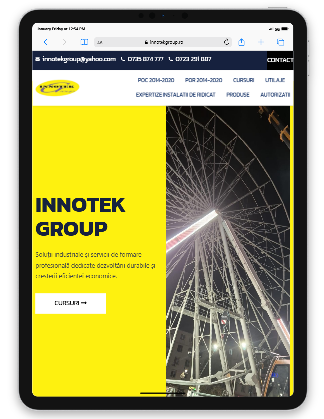 Design-ul site-ului Pentru innotek.ro, am dezvoltat un site WordPress modern, structurat pentru a reflecta profesionalismul și diversitatea serviciilor oferite de companie. Design-ul este intuitiv și orientat către utilizator, punând în evidență soluțiile industriale, cursurile de formare profesională și produsele oferite.