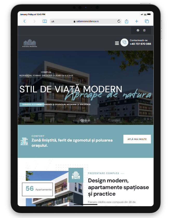 Rezultatul final Sabareraresidence.ro este un site bine optimizat, cu un design profesional, conceput să atragă și să informeze potențialii cumpărători. Oferă o experiență digitală care reflectă calitatea și eleganța ansamblului rezidențial, poziționându-l ca o opțiune premium pe piața imobiliară locală.